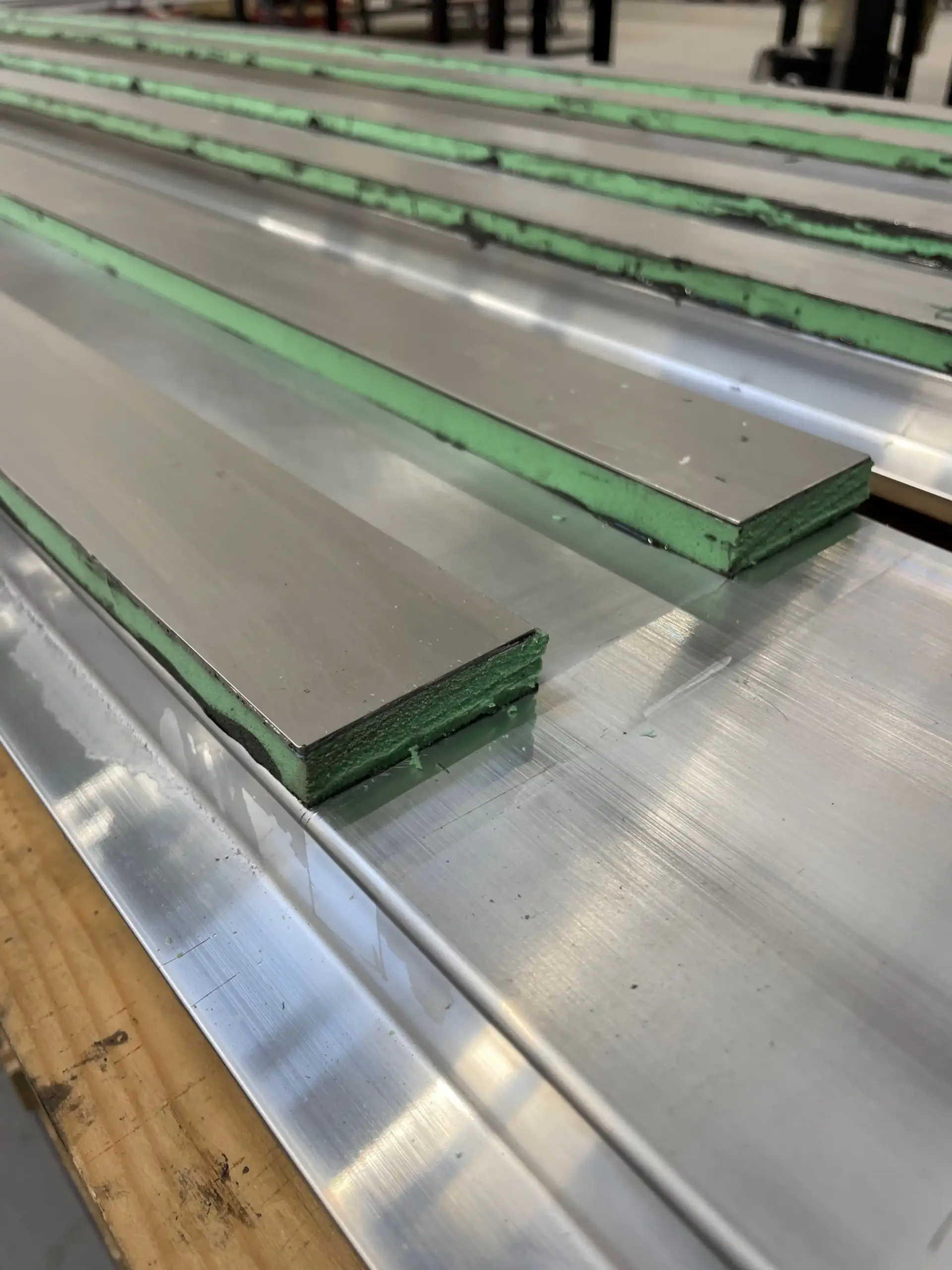 Die Grundstruktur und die sichtbaren Elemente bestehen hauptsächlich aus dünnen Aluminium- oder Sandwichpaneelen.